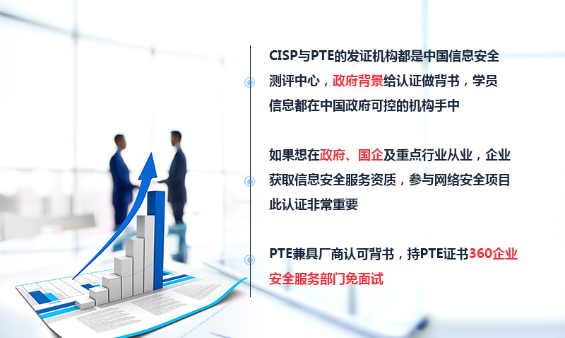 注册信息安全专业人员-渗透测试工程师,英文为Certified Information Security Professional - Penetration TestEngineer ,简称CISP-PTE。是由中国信息安全测评中心与360安全集团联合推出的证书。证书持有人员主要从事信息安全技术领域安全渗透测试工作,具有规划测试方案、编写项目测试计划、编写测试用例、测试报告的基本知识和能力。CISP-PTE专注于培养考核高级应用安全人才,是业界首个理论与实践相结合的技能水平注册考试。